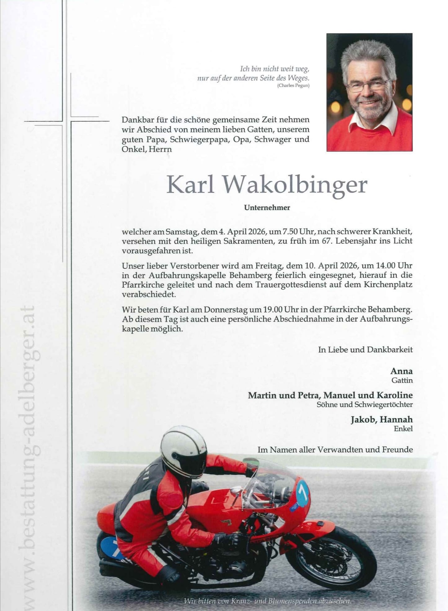 Home » News » Wir trauern um Karl Wakolbinger Wir trauern um Karl Wakolbinger Beitrag vom 6. April 2026